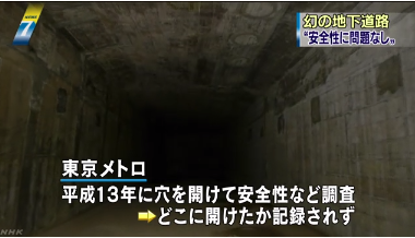 上はNHKニュースからの切り取り写真ですが、変ですね。これだけ立派なトンネルを巨額の金を使って造っておきながら、一体どこに、このトンネルを建設したのか全く記録が無かったっておかしい話ですよ。このニュースは、もう既に消されていて見れない状態になっています。