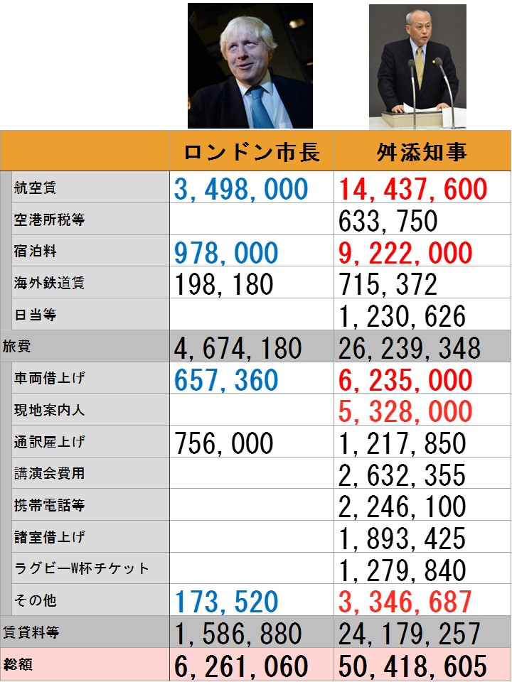 【衝撃】海外出張経費 ロンドン市長626万円に対し、舛添都知事5,040万円
