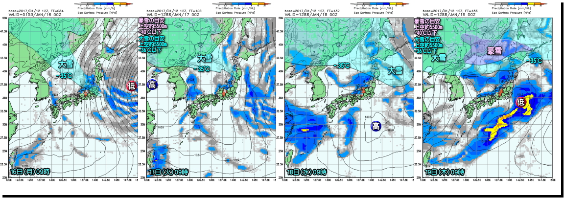 気象庁が普通の天気予報(短期予報・週間予報)の作成に用いているGSMモデル(スーパーコンピューターによるシミュレーション)を使ってまとめておきました。