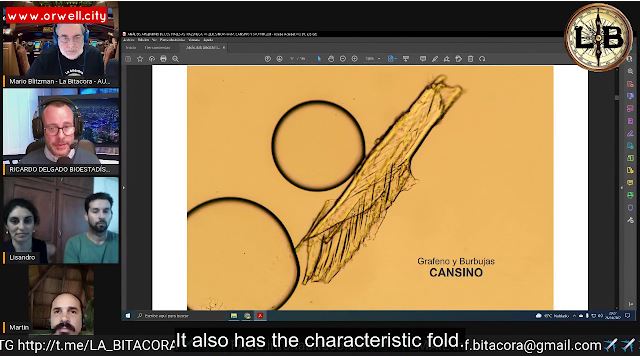 パブロ・カンプラ・マドリード教授[Prof. Pablo Campra Madrid]とチリの研究者たちによって行われた研究の結果のように、アルゼンチンのそれらも酸化グラフェンの存在、さらに、La Quinta Columnaのディレクター、生物統計学者リカルド・デルガド[Ricardo Delgado]によって証明された同じタイプのマイクロ技術を確認しました。