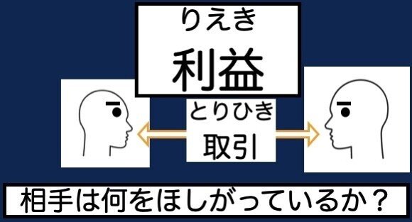 「取引」は相手との利益のやりとりをします。ですから、相手が何をほしがっているか?を知る必要があります。