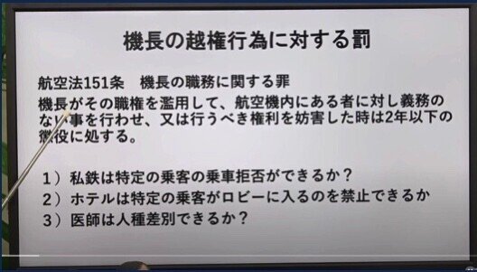 例えば飛行機でのマスク強要も、法律は禁止しています。