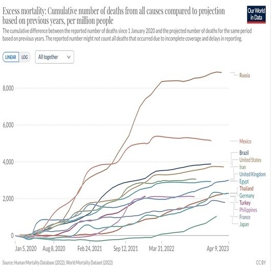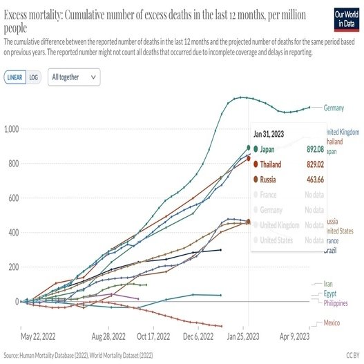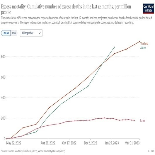 タイは接種数を公開していないからなんとも言えないけど(タイはマスク続けてるから?)、イスラエル等先に接種してやめた国で超過死亡が増えていないからには接種をやめた以外の要因と思われる。