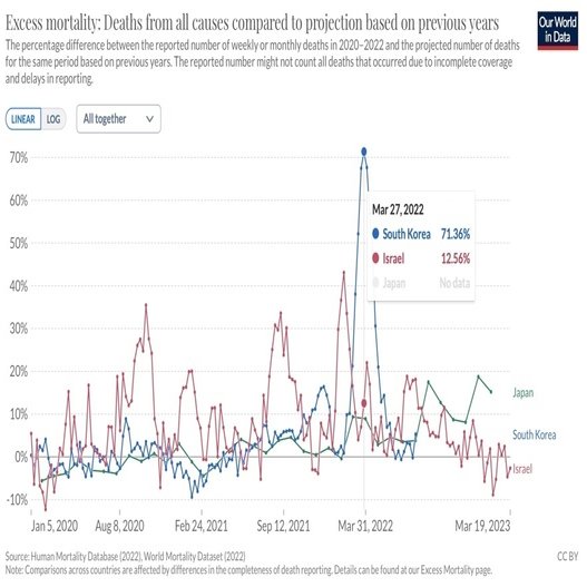 韓国は3回目接種で70%以上も死者が増えた。そこで皆が気付いて打つのを止めることができた。