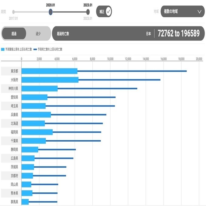 愛知県:人口4位 閾値を超える超過死亡 6位