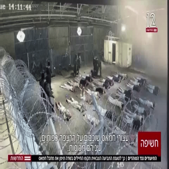 イスラエル・チャンネル12が2024年8月7日、ガザのすぐ北にあるスデ・テイマン刑務所で、兵士がパレスチナ人囚人に性的虐待を加えたとされるビデオを公開(ロイター)。
