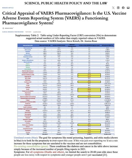 VAERSにおける控えめな過少報告係数(URF):