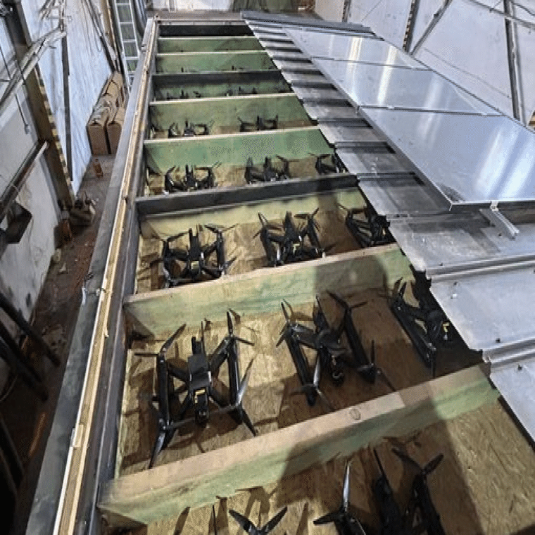 報道によると、ウクライナは木製の移動式キャビンをロシアに密かに輸送し、その屋根の下にFPVドローンを隠していた。これらのキャビンはトラックに搭載され、人目につかない場所に駐車されていた。