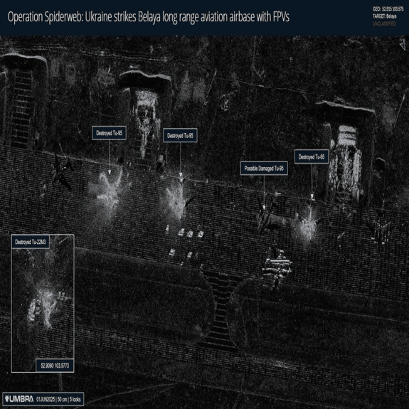 ウクライナは4つの別々の基地で「41機の航空機」を撃墜したと主張しているが、昨日ウクライナのFPVドローンによって攻撃されたイルクーツク地域のベラヤ空軍基地の衛星画像が公開された。