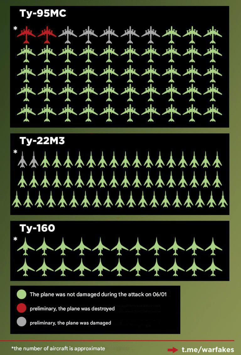 ウクライナは、4つの別々の空軍基地でロシアの爆撃機41機を攻撃したとされており、その一部はウクライナ国境から4,400キロも離れた場所にある。
