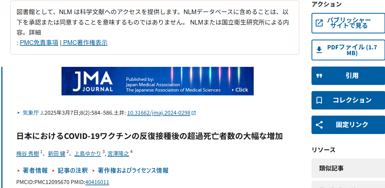 日本におけるCOVID-19ワクチンの反復接種後に超過死亡が大幅に増加