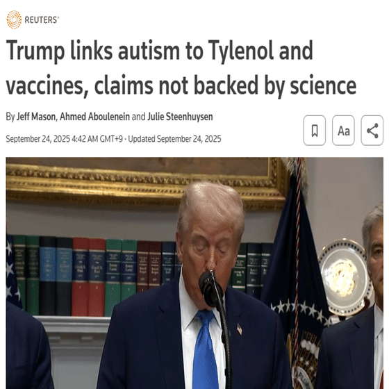 先日、トランプ大統領とケネディ厚生長官が「自閉症の原因はワクチンと解熱薬(タイレノール)」と報道陣の前で発表した。ロイターなどの大手メディアもこれを報じた。