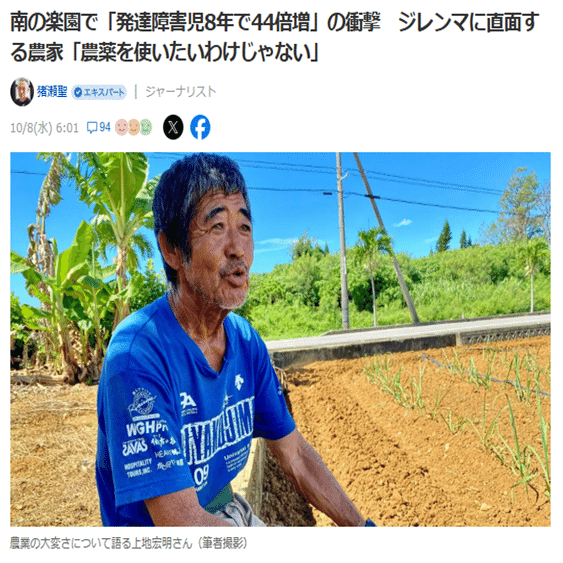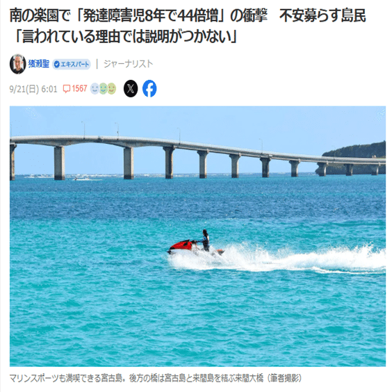 「宮古島で発達障害児が8年で44倍増加」という一連の記事があった。