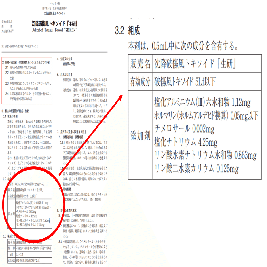 まず、どんなワクチンであれ、あるいはどんな薬を飲むのであれ、まずは添付文書を確認するべきです。ネットで何でも調べられる時代なのだから、そういう手間を惜しんじゃいけない。破傷風ワクチンの添付文書を調べてみると、