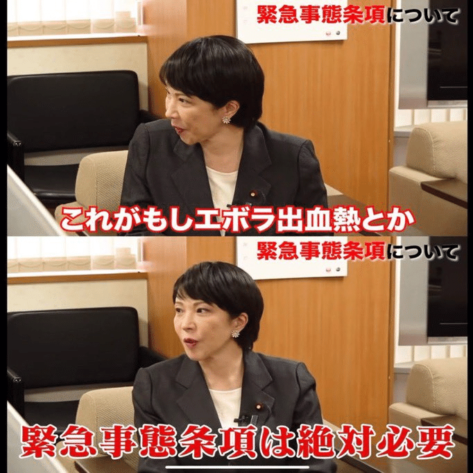メディアが恐怖を煽り立てる。どこかから流出したエボラウイルスが複数名に感染した。感染した人々は即死。メディアは「致死率90%の恐ろしいエボラウイルスが爆発的に広まっている」と騒ぐ。捏造映像でも何でも使って、人々に恐怖を植え付ける。政府は「日本が感染症の輸出国になってはならない」として緊急事態を宣言、日本の『ロックダウン』を行う。海外渡航の禁止。物流の制限。感染対策という大義名分のもとに強行される人権侵害、、、