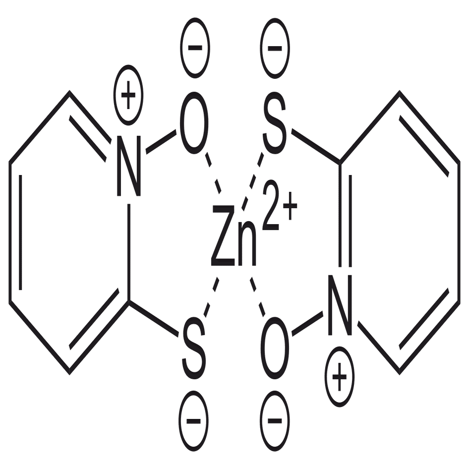 ピリチオンが亜鉛と錯体を作って、以下のようなジンクピリチオンになる。