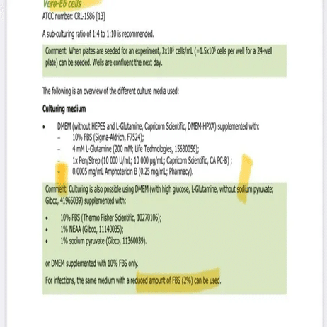 実際には、記録されている限り、すべてのSARS-CoV-2分離株において、この感染培地をFBS濃度2%、あるいは1%まで減らすことが選択されています。これらの論文の一部でネガティブコントロールとして機能するとされている模擬感染株(実際にはほとんど実験を行っていない)では、使用した試薬とその濃度がほとんど記録されていません。したがって、これらの実験の目的は、これらの真のネガティブコントロールを実施し、SARS-CoV-2分離株で使用された試薬濃度の正確な変化を記録することです。