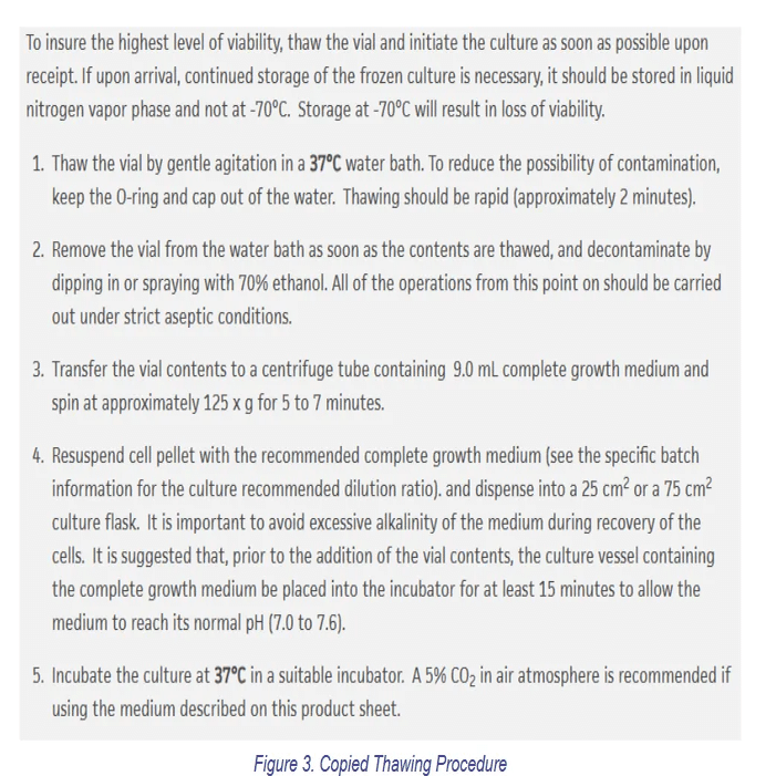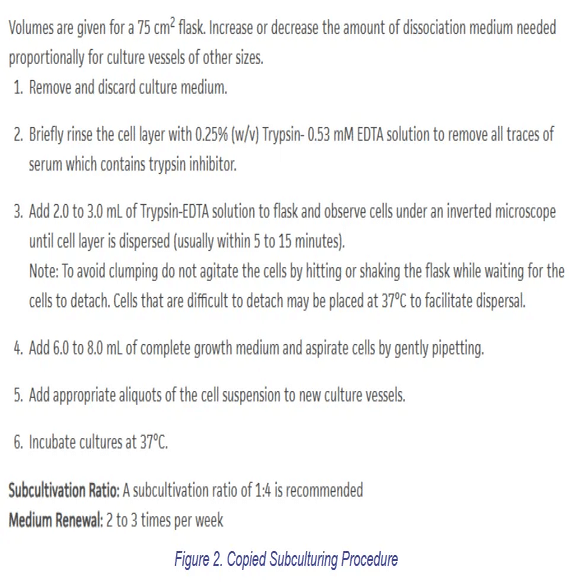 デフォルトでは、継代培養はここにコピーした ATCC 推奨の手順に従うものとします。