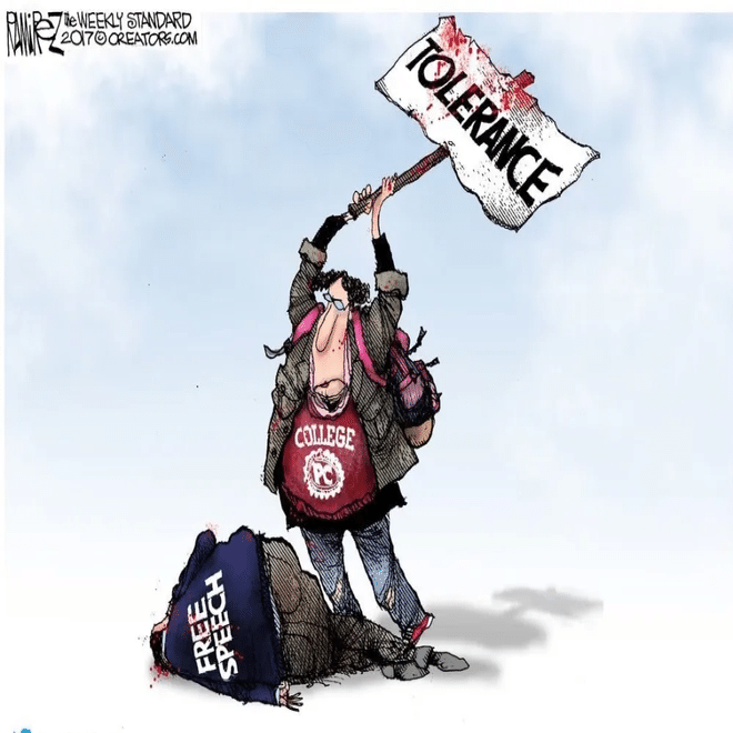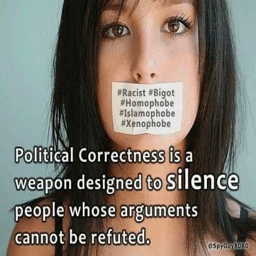 政治的正しさの教え込みがあまりにも広範に及んでいるため、多くの人々が洗脳され、自分たちの国は、世界主義の国境のない新しい地域世界秩序を支持して破壊されるべき、偏狭な迷惑な存在であると無視されるようになっている。これは、オーウェル主義と『すばらしい新世界』の恐ろしい混合である。