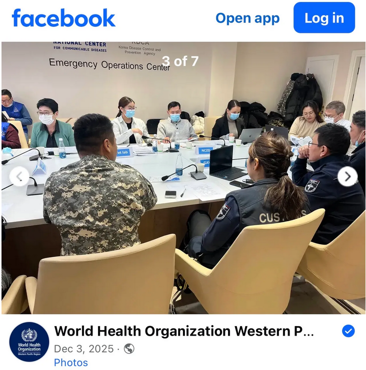 本演習は世界保健機関(WHO)西太平洋地域事務局を通じて組織され、国際保健規則(IHR)に基づき実施されました。IHRは、国境を越えた影響を伴う公衆衛生上の緊急事態について、各国がWHOに通知し対応する方法を規定する法的拘束力のある枠組みです。